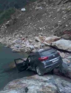 ऊखीमठ रूद्रप्रयाग गौरीकुंड राष्ट्रीय राजमार्ग पर कुण्ड – काकडागाड के समीप 1 कार पर पहाडी से पत्थर आने के कारण...