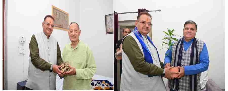 कृषि मंत्री गणेश जोशी ने भाजपा प्रदेश अध्यक्ष एवं राज्यसभा सांसद महेंद्र भट्ट के आवास जाकर शिष्टाचार भेंट की। उन्होंने बीजेपी अध्यक्ष को दीपावली की शुभकामनायें दी।