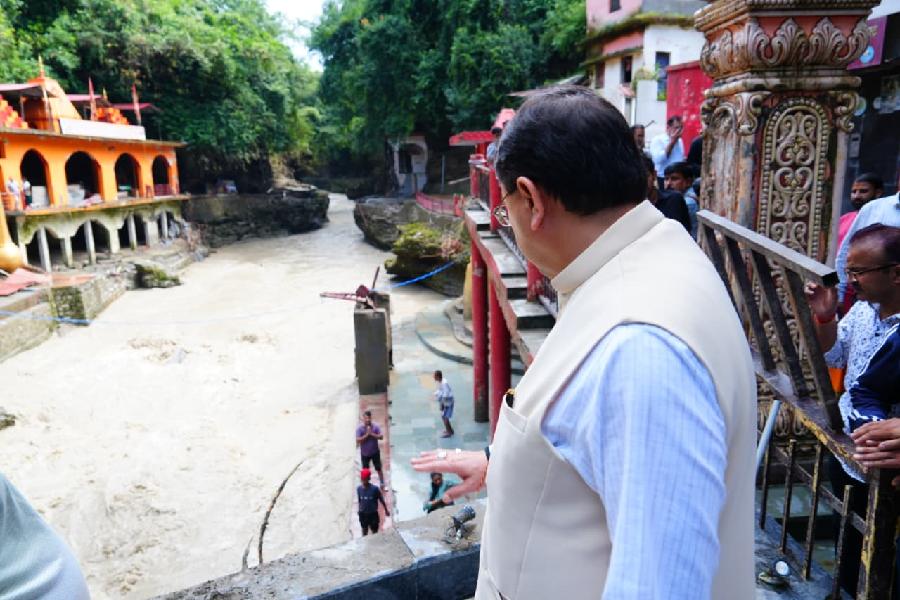 मुख्यमंत्री धामी ने टपकेश्वर महादेव मंदिर क्षेत्र में अतिवृष्टि से प्रभावित स्थल का किया निरीक्षण