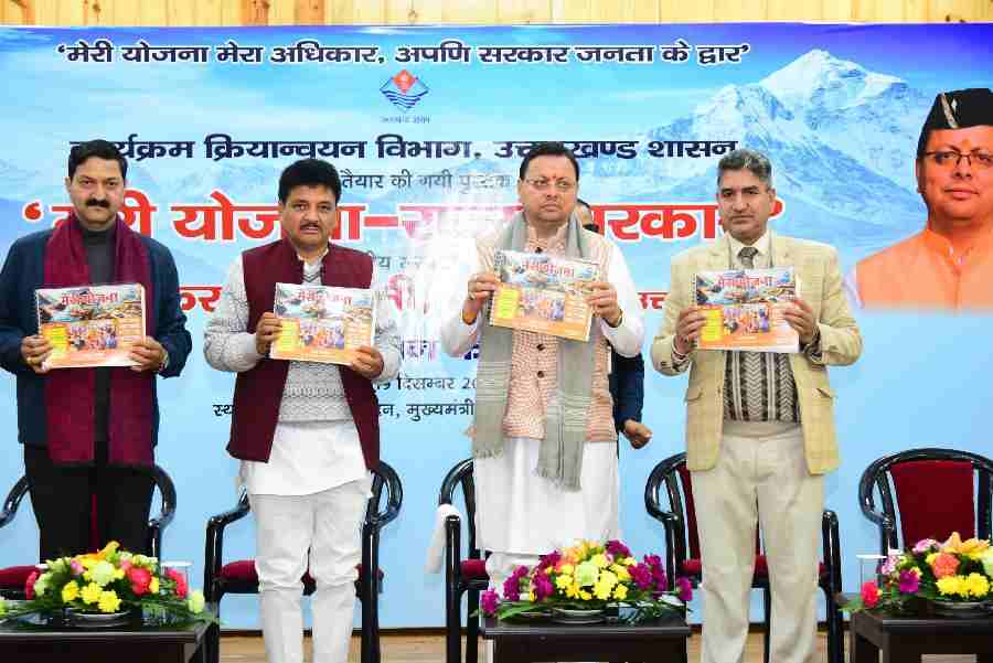 मुख्यमंत्री पुष्कर सिंह धामी ने गुरूवार को मुख्यमंत्री कैंप कार्यालय स्थित मुख्य सेवक सदन में कार्यक्रम क्रियान्वयन विभाग द्वारा प्रकाशित ’’मेरी योजना-राज्य सरकार’’ पुस्तक का विमोचन किया। मुख्यमंत्री ने कहा कि हमारा उद्देश्य जनता के लिए केवल योजनाएं बनाना नहीं है, बल्कि सभी योजनाओं का धरातल पर क्रियान्वयन सुनिश्चित करना भी है, जिन योजनाओं का हम शिलान्यास करते हैं उनके लोकार्पण का भी हमारा प्रयास रहता है, ताकि योजनाओं का लाभ प्रत्येक पात्र व्यक्ति तक पहुंच सके। इस उद्देश्य को प्राप्त करने के लिए, इस पुस्तक को तैयार किया गया है, जिसमें सरकार की विभिन्न जनकल्याणकारी योजनाओं और सेवाओं को सरल और व्यावहारिक भाषा में प्रकाशित किया गया है।