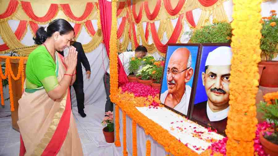 मुख्य सचिव ने गांधी जयंती और शास्त्री जयंती के अवसर पर राष्ट्रपिता महात्मा गांधी तथा पूर्व प्रधानमंत्री लाल बहादुर शास्त्री के चित्र पर माल्यार्पण कर उनका भावपूर्ण स्मरण किया