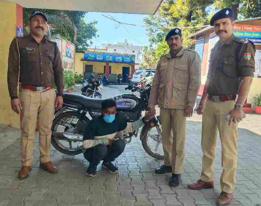 पुलिस टीम द्वारा किये जा रहे लगातार प्रयासों के परिणाम स्वरूप दिनांकः 12/12/2024 की रात्रि मे अम्बाडी तिराहा विकासनगर में चैकिंग के दौरान मुखबिर की सूचना पर एक अभियुक्त को चोरी की मोटर साइकिल स्प्लेण्डर संख्या: यू0के0-16-डी-4763 के साथ गिरफ्तार किया गया। पूछताछ में अभियुक्त ने अपना नाम तैय्यब पुत्र अय्यूब निवासी ग्राम शेरपुर पेलो, थाना मिर्जापुर, जिला सहारनपुर, उ०प्र०, उम्र 24 वर्ष बताया।