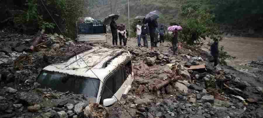 3- थराली देवाल मोटरमार्ग पर थराली रामलीला मैदान के समीप सिपाही गदेरे से आये मलबे की चपेट में आये दो वाहन ,एक आल्टो कार और एक स्कोर्पियो मलबे में दबी