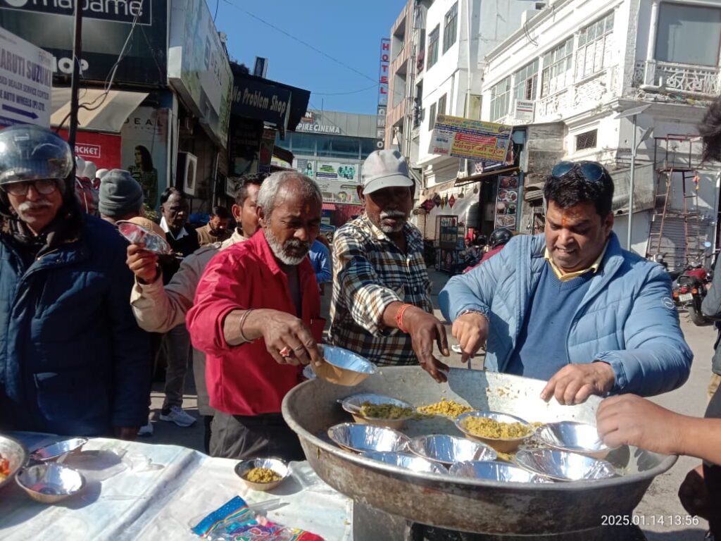 देहरादून:-मकर संक्रांति पर्व पर राजपुर रोड,यूनिवर्सल पेट्रोल पंप पर धूमधाम से खिचड़ी का प्रसाद श्री ब्रजेश विरमानी द्वारा वितरित किया गया|