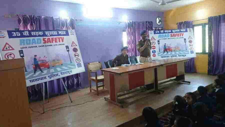 35 वें सडक सुरक्षा माह के अन्तर्गत स्कूल /कॉलेजो में पुलिस ने चलाया जागरूकता अभियान, स्कूली छात्र छात्राओं को रोड साइन तथा यातायात के नियमों की दी विस्तृत जानकारी